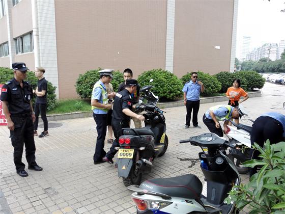 为进一步规范学校交通秩序,保障师生员工出行安全。根据《长沙市城市道路车辆通行若干规定》及《开云kaiyun体育交通安全管理规定》,落实6月10日学校综治领导小组《关于开展校园交通秩序整治的通告》,经与天心区交警大队联系,9月9日下午,保卫处与天心区交警大队在金盆岭校区联合开展整治燃油摩托车在校内违法上路行驶的行动。行动共纠正摩托车在校园内违法上路行驶行为10台次,收缴燃油摩托车6台,并对相关驾驶人给予了批评教育和处罚。
