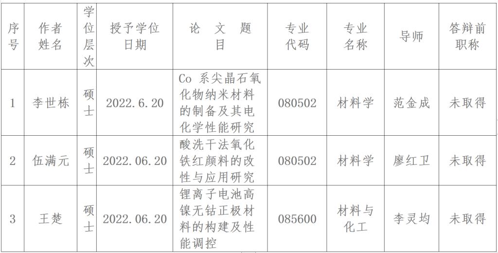 根据湖南省教育厅《关于开展2024年湖南省优秀博士、硕士学位论文评选工作的通知》(湘教通〔2024〕97号)和《关于开展2024年开云kaiyun体育优秀博士、硕士学位论文评选和湖南省优秀学位论文推荐工作的通知》精神,经学生自愿申请,学院学位评定分委员会进行评审并表决,拟推荐李世栋等三位同学的硕士学位论文参评2024年开云kaiyun体育校级优秀硕士学位论文。