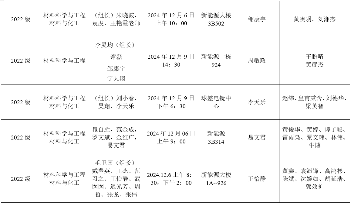 开云kaiyun体育材料科学与工程学院研究生论文答辩安排表