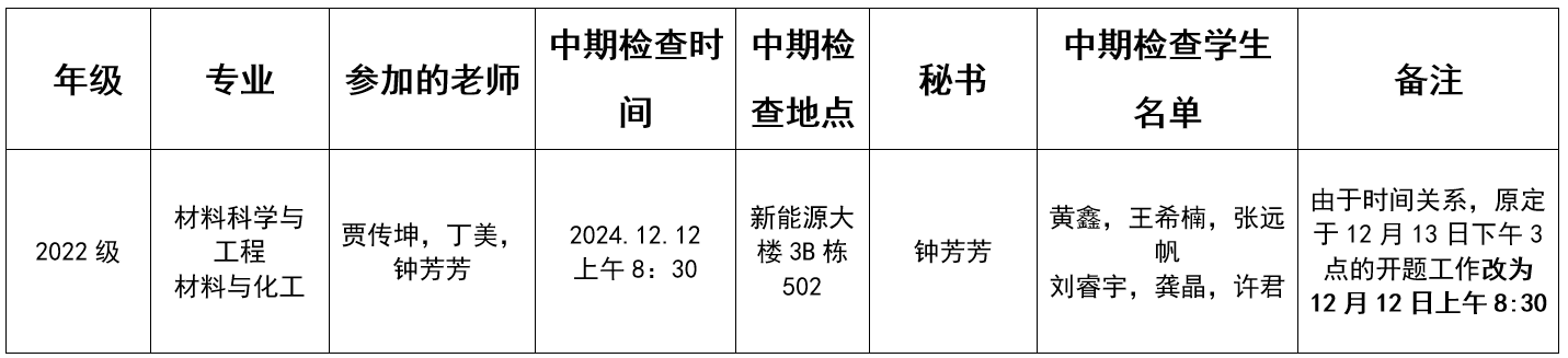 材料科学与工程学院研究生学位论文中期检查安排表(三)