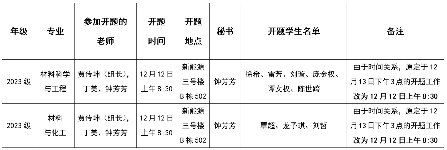 材料科学与工程学院研究生学位论文开题安排表(三)