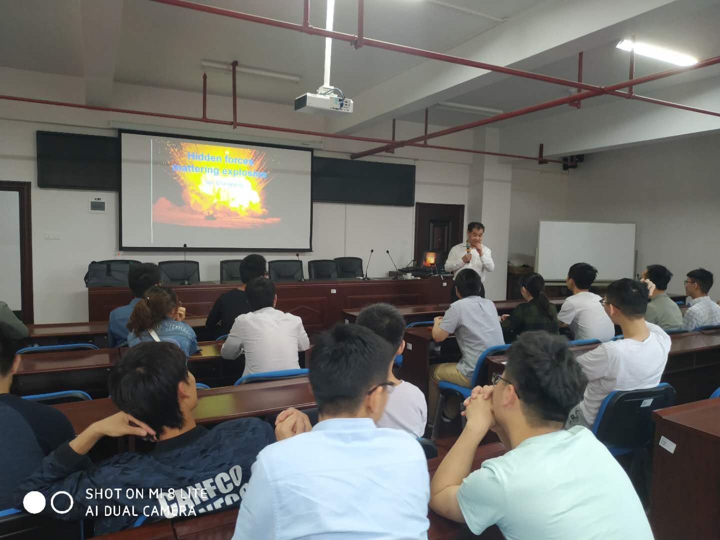 为营造良好的学术氛围,加强材料学科协同创新,21日下午,材料学院特邀请新加坡南洋理工大学电气与电子工程学院孙长庆教授,在新能源大楼“Hidden forces mattering explosion受限与非受限爆炸的储能燃爆机理”的学术报告。副院长范金成教授致欢迎词,秦伟老师主持,相关领域教师和研究生参加了学术报告会。