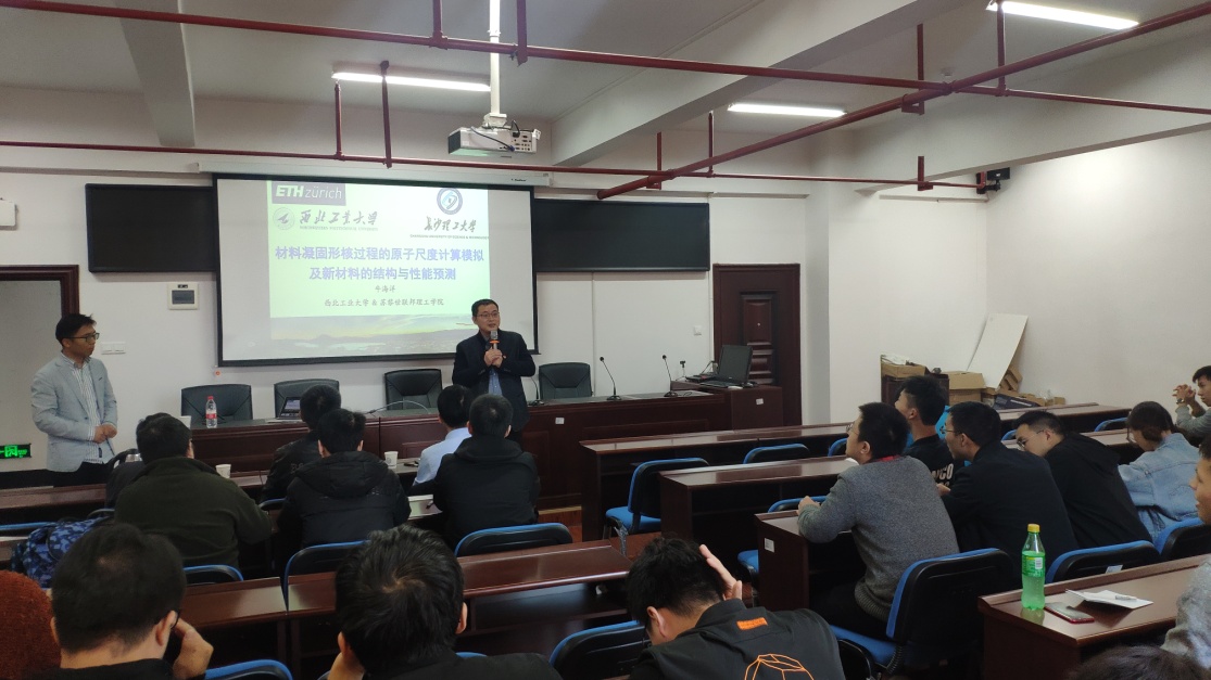 20191028日下午1500在新能源大楼1A- 302多功能会议室,材料科学与工程学院邀请了西北工业大学牛海洋教授到学院进行题为材料凝固形核过程的原子尺度计算模拟及新材料的结构与性能预测学术报告。学术报告会由院党总支书记张国强主持,他代表材料学院对牛海洋教授的到来表示热烈欢迎,并介绍了牛海洋教授的基本情况,材料学院70师生出席了此次学术报告会。