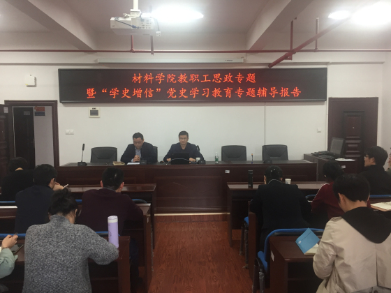 4月20日下午2:00,材料学院在新能源大楼1-302召开了教职工思政专题暨“学史增信”党史学习教育专题辅导报告会,马克思主义学院院长陈万球教授应邀到我院作题为《“马克思主义为什么行”的内在逻辑》的专题报告,会议由院党总支书记张国强主持,院全体教职工和学生党员聆听了报告。