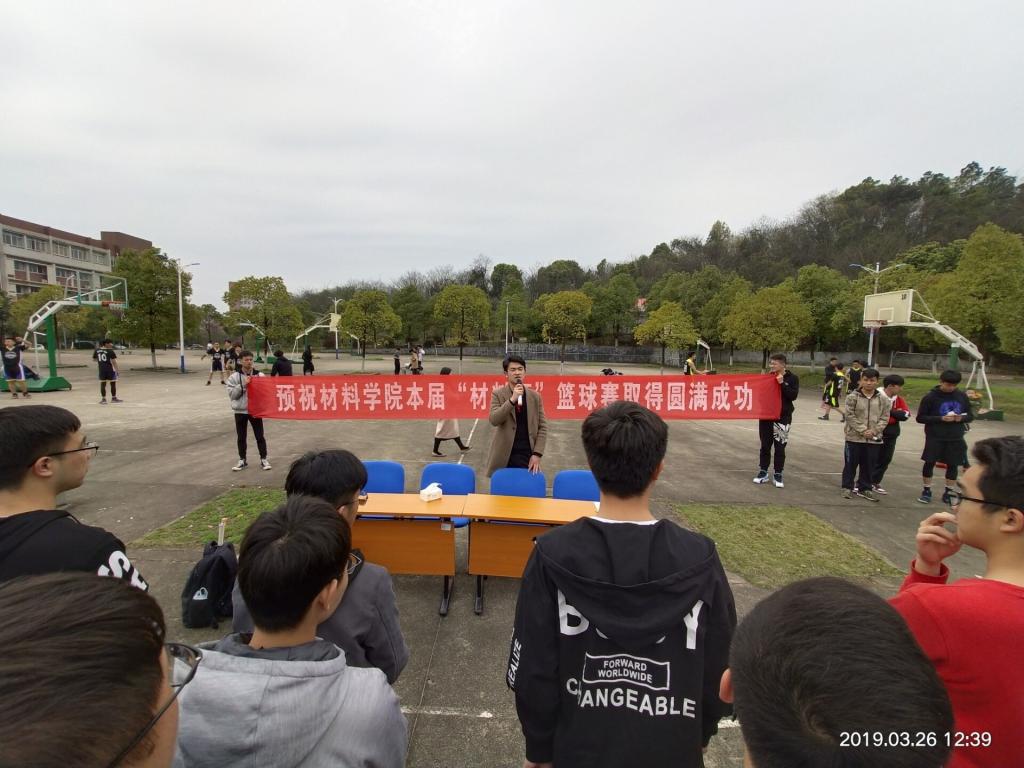 3月26日,材料学院于创新创业园篮球场举行了“材料杯”篮球赛开幕式。院党总支副书记唐青、院团委书记陈鑫林以及18级辅导员谢易真出席了本次开幕式,十三支参赛队伍参加。
