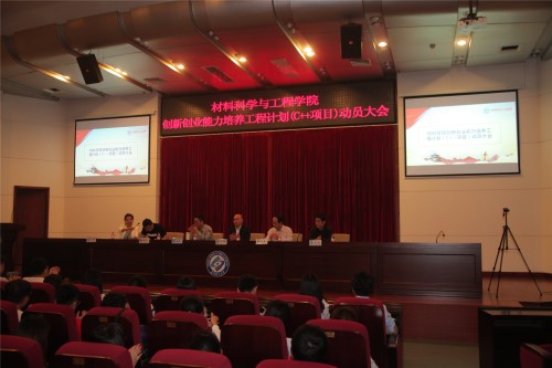 近日,材料学院于图书馆报告厅召开创新创业能力培养工程计划(“C++项目”)启动仪式,校学工部副部长霍向阳、全体院党政领导出席会议,全体本科生参加,会议由院党总支副书记唐青主持。