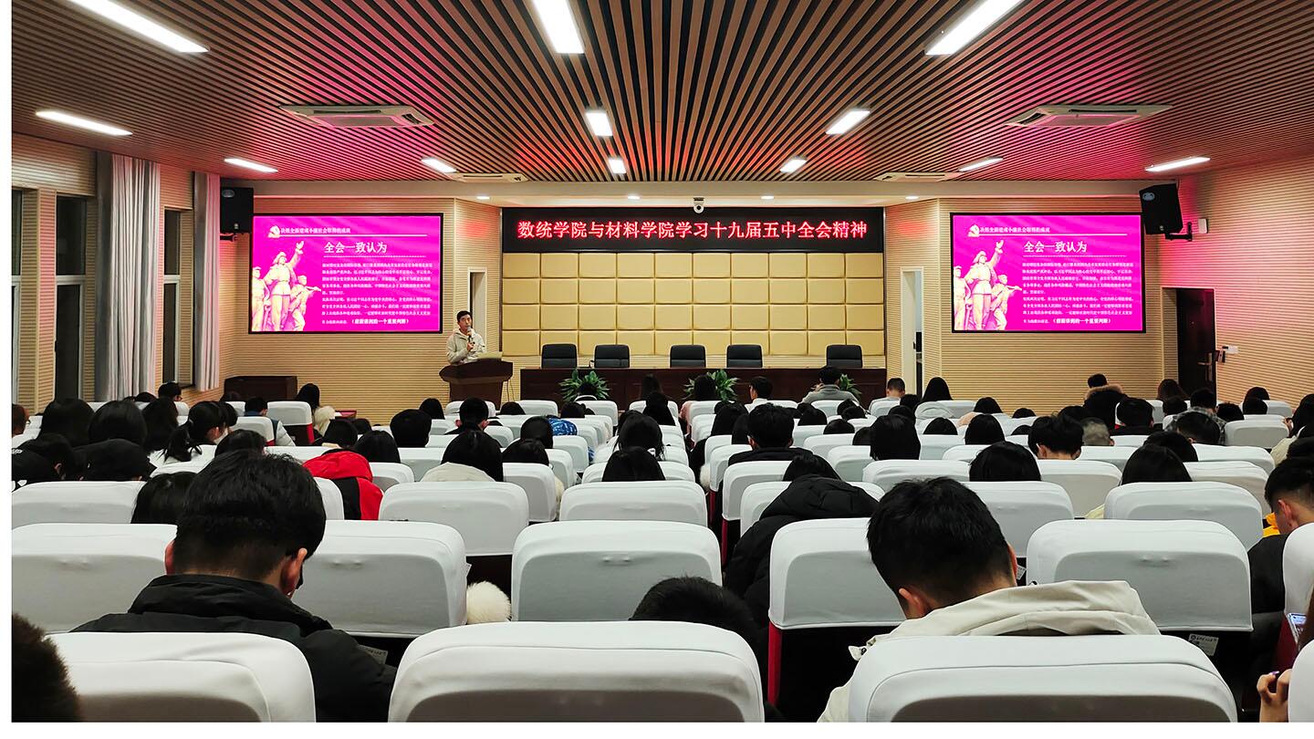 12月15日下午,材料学院与数统学院于云塘理科楼A200召开学习贯彻党的十九届五中全会精神主题团课,这是材料学院卓越管理者培训班第四课,也是“2035,你在哪里”系列活动之一,本次团课由数统学院团委书记柳映堂老师主讲,培训班全体成员参加。