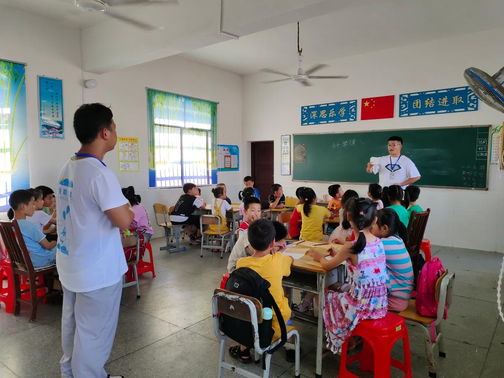 最后,各营营长在教室举行见面会,与学生们进行自我介绍以加深双方之间的了解,并介绍营名、口号,强调纪律问题,开始正式授课。实践团成员表示,希望通过本次活动提高学生的综合素质,引导正确的价值观念,切实为乡村儿童的成长带去关怀和帮助,为助力乡村振兴贡献青春力量。