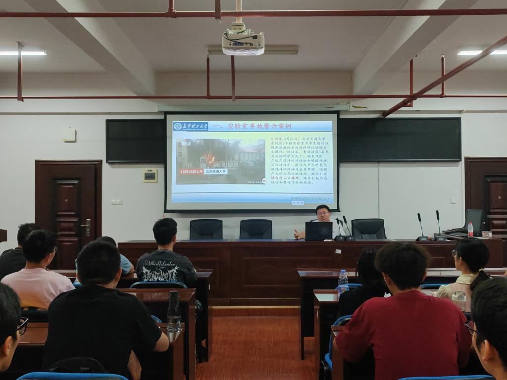 为切实加强安全教育,增强新生安全意识和应急处理能力,有效防范实验室安全事故发生,9月21日下午,材料学院于新能源一栋302开展2023级研究生实验室安全教育讲座。本次讲座由学院实验中心主任李富进主讲,研究生辅导员王志亮及2023级全体研究生新生参加。