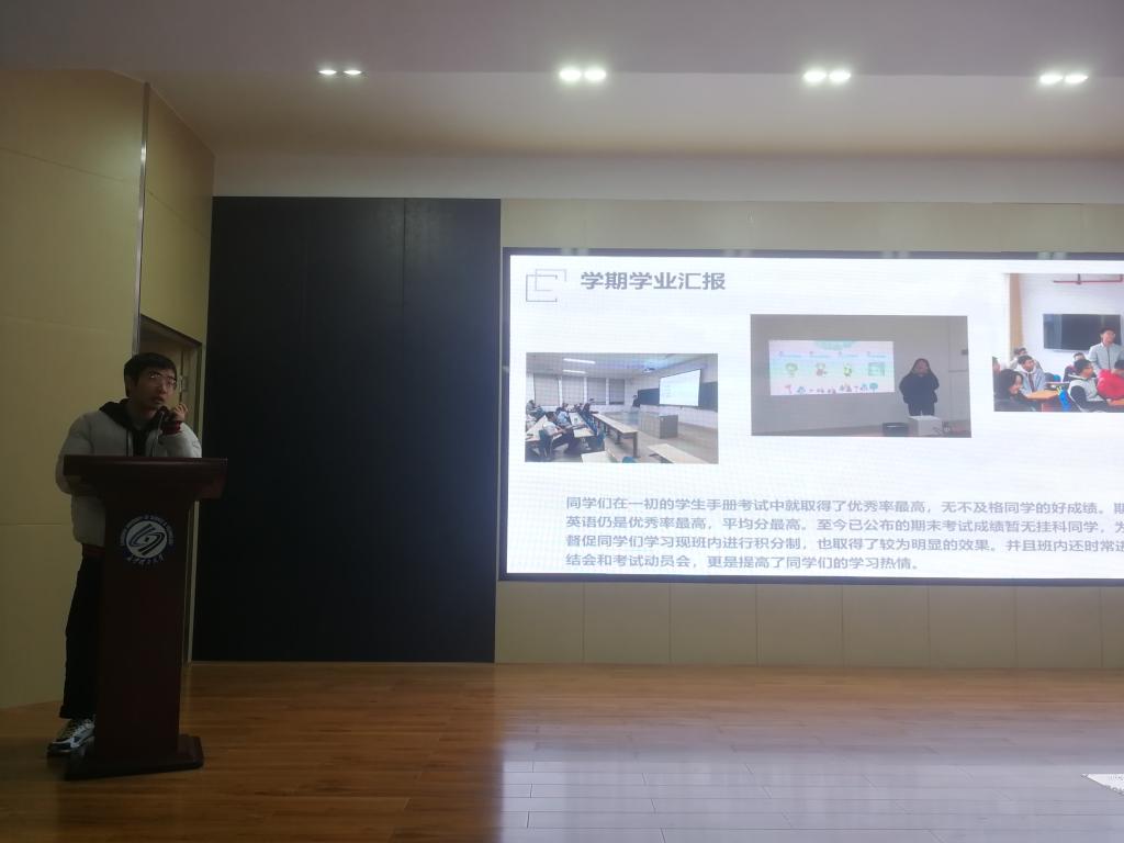 首先19级全体学生一起观看了《青春的模样》,感受榜样的力量,领会青春应有的风采。随后,六个新生班级代表依次进行学期工作汇报与成果展示,各位负责人通过PPT、视频、数据等方式分享了班级学风建设、文明养成、文化建设以及班级特色的建设举措和成效,并对下学期班级工作作展望,提出了量化的目标。1905班为提升班级凝聚力所开展的“每月暖心生日会”、1904班为促学在学期末发起“相约图书馆”学习活动都给大家留下了深刻的印象。接着,银波对本学期年级工作进行总结,充分肯定了各班级取得的成绩,就存在的共性问题提出了相关建议。同时她宣读了在军训、文明寝室创建以及各项文体活动中获奖的优秀个人和团体名单。
