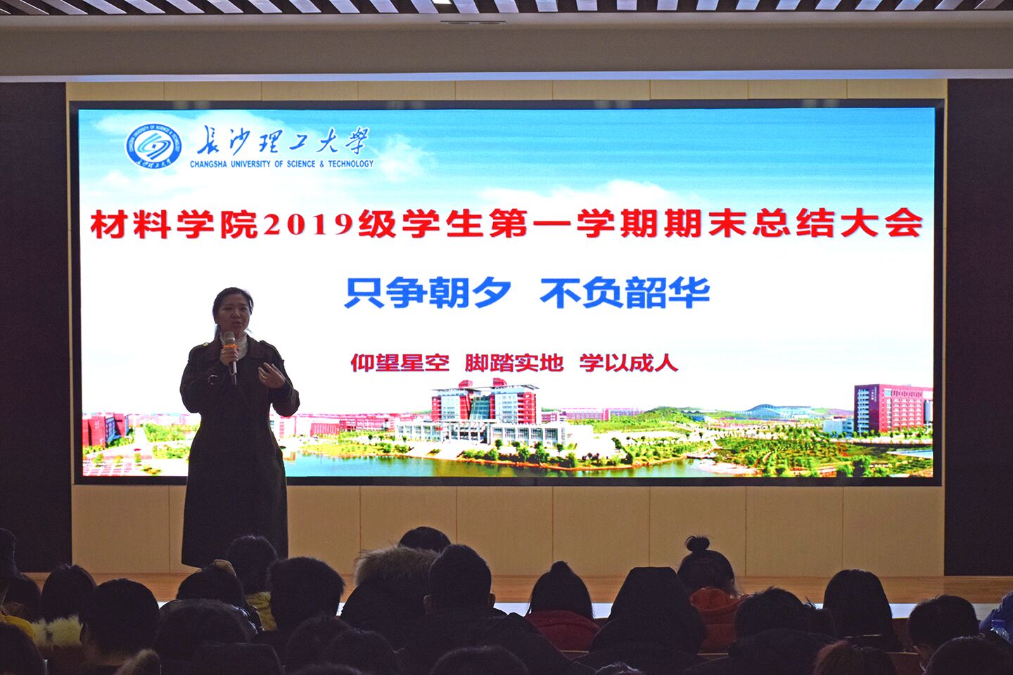 1月9日下午,材料学院于工三A201召开2019级学生期末总结大会,学院党总支副书记唐青出席,全体19级学生参加,会议由年级辅导员银波主持。