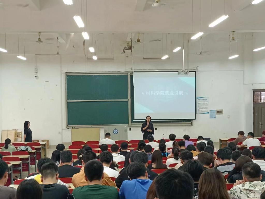 9月5日上午材料学院在工一A106召开2024届毕业生考研就业动员大会,学院党总支副书记陈华主讲,毕业年级辅导员谢易真主持,2024届全体研究生、本科生毕业生参会。