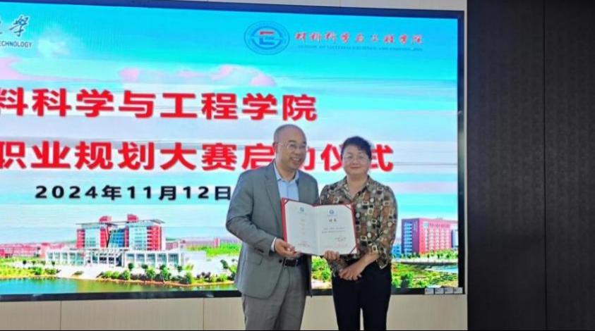 2024年11月12日下午,材料科学与工程学院在工科三号楼A307室举行第二届生涯规划大赛启动仪式。学院党委书记郑延恒、学院党委副书记邵巧艳、长沙岱勒新材料科技股份有限公司总经理段志勇、学院辅导员出席,本次活动由邵巧艳主持,各年级学生代表共300余人参加活动。
