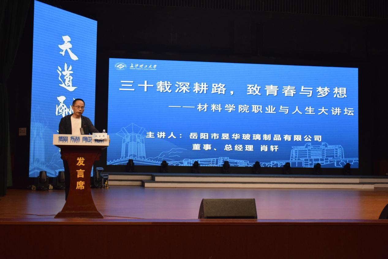 开云官网89届硅酸盐专业杰出校友,岳阳市昱华玻璃制品有限公司董事、总经理、高级工程师肖轩出席并作《三十载耕路 致青春与梦想》专题报告。