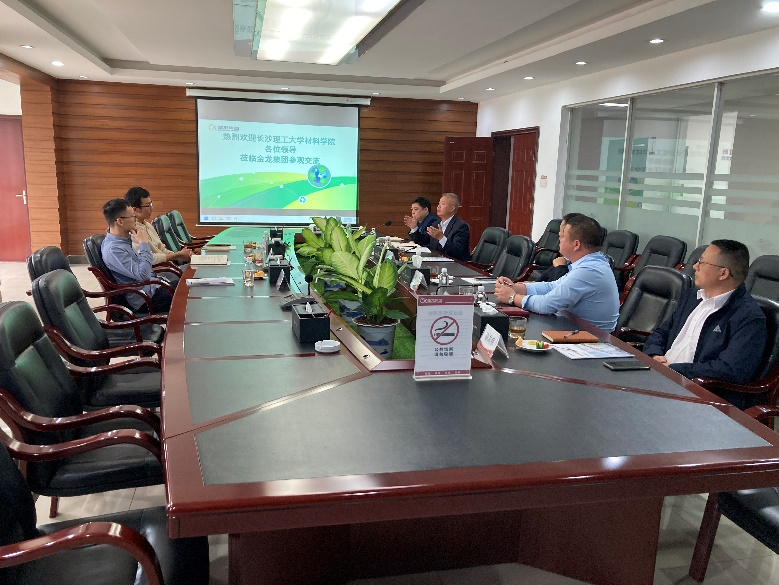 10月26日上午,开云kaiyun体育材料学院副院长段军飞、秦伟博士和李天乐博士一行,至金龙集团进行调研与交流。金龙集团总经理王先周、人力资源部经理吴林明、生产部经理龙俊、销售人力资源经理欧志明等参加座谈。