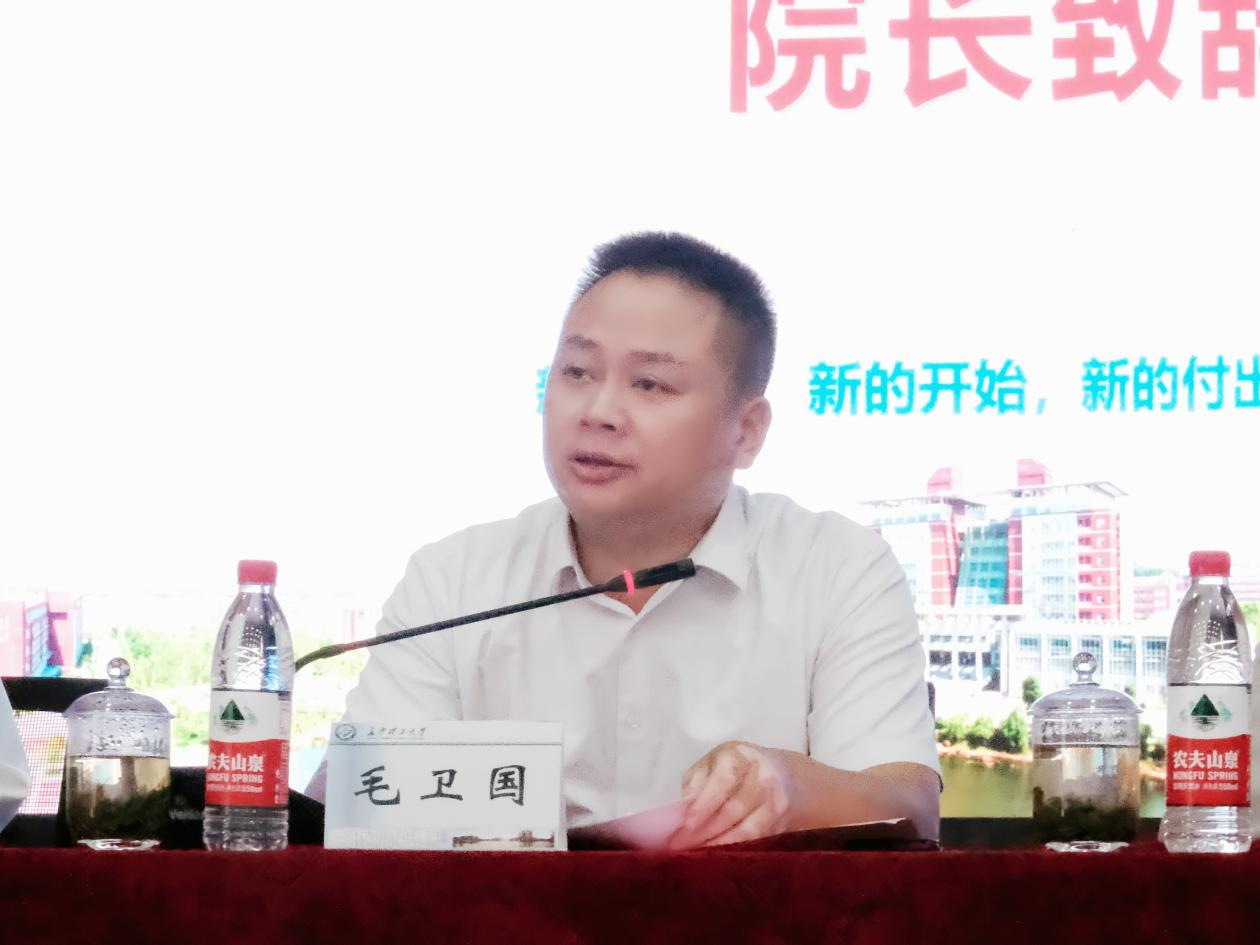 典礼伊始,材料学院院长毛卫国致辞。他对全体新生加入材料学院表示热烈欢迎,并向同学们提出三点希望,一要心怀家国,志存高远,树立远大理想,努力成就有意义、有高度的人生;二脚踏实地,矢志担当,练就过硬本领,做学有所成、学有所用全面发展的人才;三要追求卓越,勇攀高峰,严格要求自我,不负韶华、不负时代,努力成长为材料科学与工程领域高素质复合型的专业人才和行业精英,成为新材好料、真材实料!