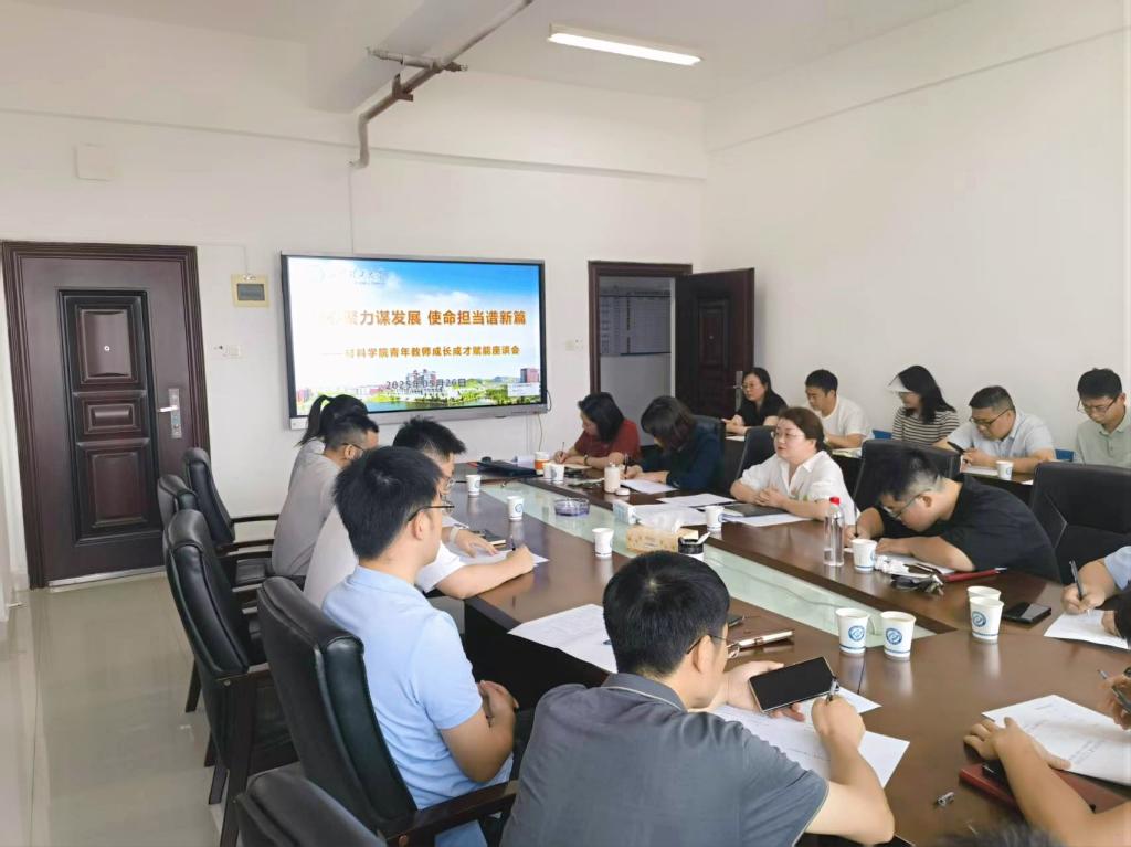 2025年5月26日,材料学院“凝心聚力谋发展 使命担当谱新篇”青年教师成长成才赋能座谈会在新能源大楼1栋924会议室顺利召开。学院党委书记郑延恒、党委副书记邵巧艳与20余名青年教师齐聚一堂,围绕青年教师成长发展展开深入交流,为学院高质量发展建言献策。学院党政办、科研办、教务办负责人参加会议。