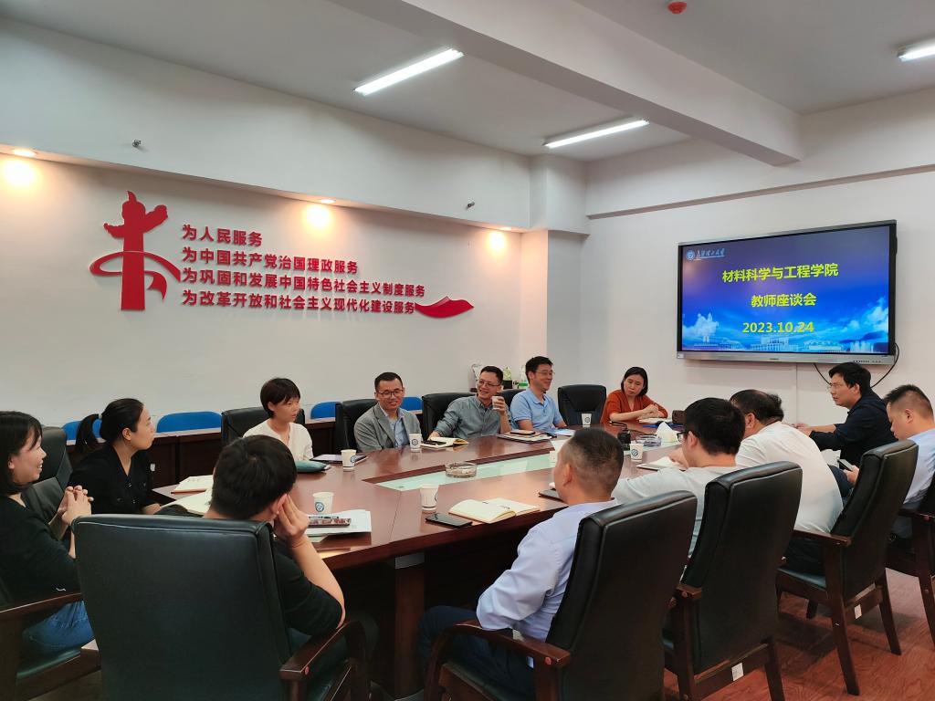 为重点了解本学院教风、教学改革及教学效果情况,并分析在教风、学风以及日常教学过程中存在的问题,提出解决的措施与对策,2023年10月24日下午,材料学院在新能源1号楼317会议室开展教师座谈会,学院领导和教师代表们齐坐一堂,共同探讨教育教学问题。