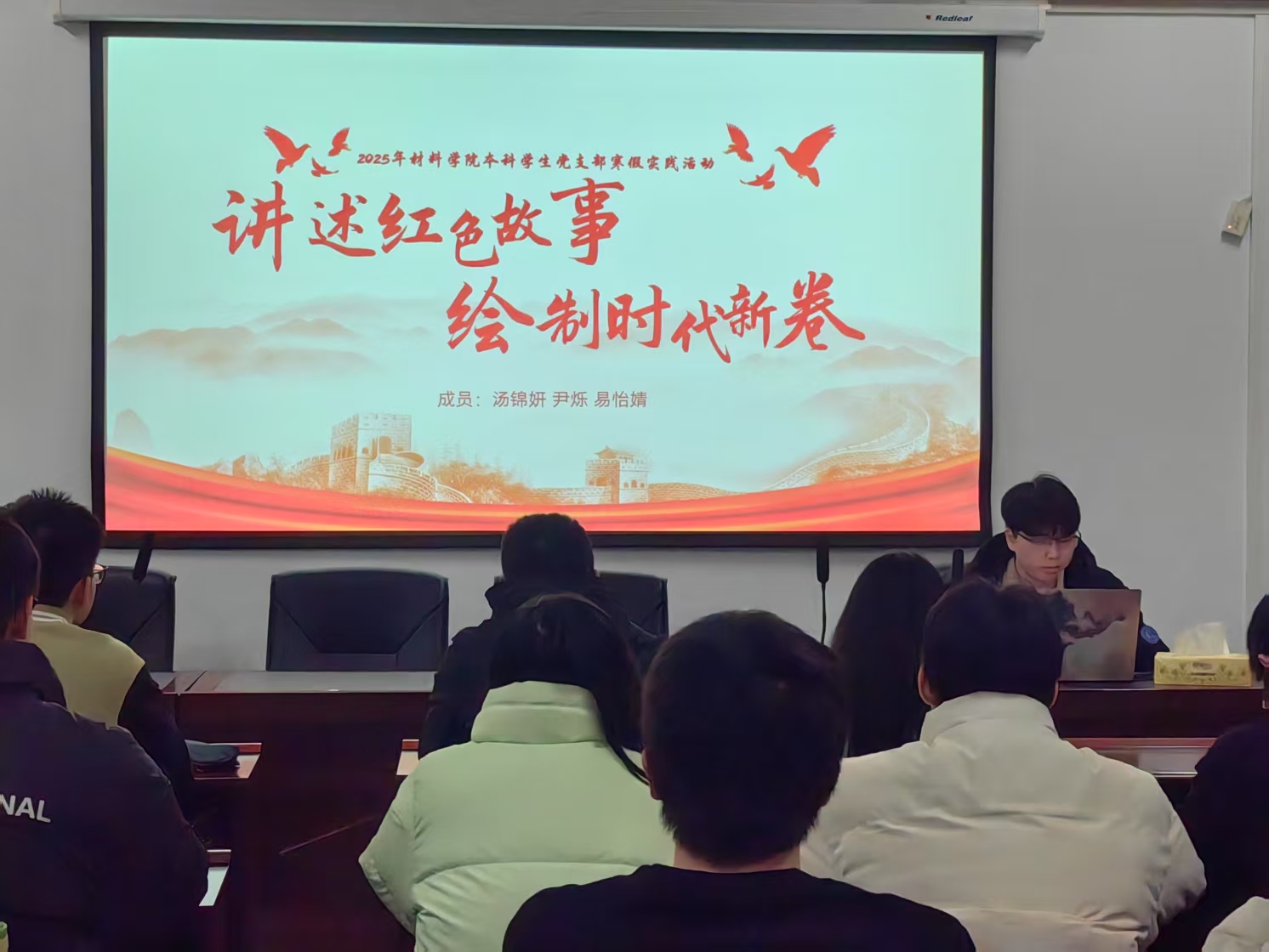3月12日,材料科学与工程学院本科学生党支部于新能源一号楼908室举办了寒假社会实践总结分享会。会议以“红色传统促发展,挺膺担当建新功”为主题,通过实践成果展示与心得分享,全面总结寒假社会实践经验,激励学生党员传承红色基因,勇担时代使命。