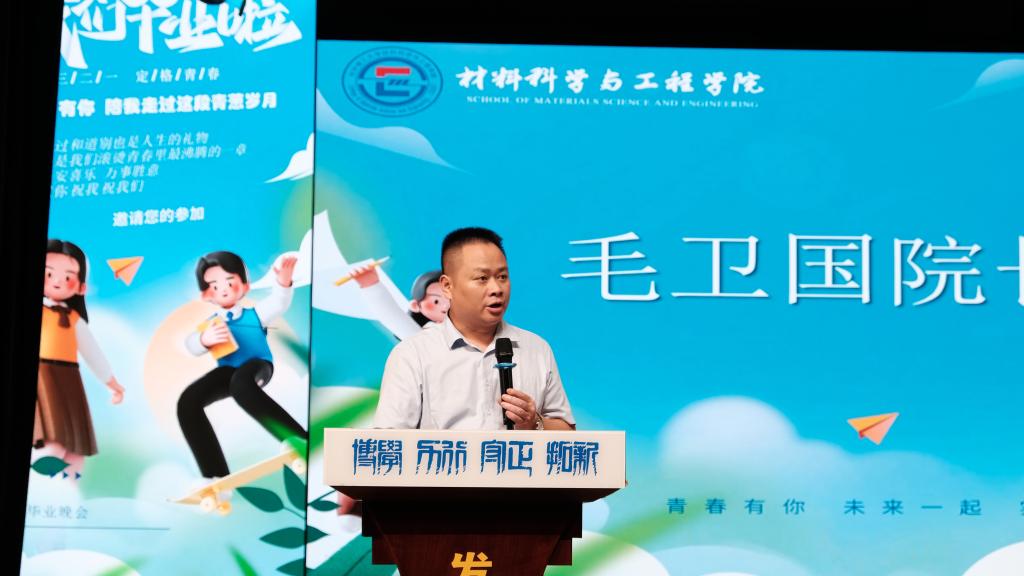 中场时段,材料学院院长毛卫国教授在致辞中向即将踏上新征程的毕业生寄予了殷切的期望。他希望,毕业生们要乘风破浪,持续前行,坚持终身学习、主动思考,在实践历练中迅速成长;要紧跟时代,常怀感恩,树立远大的理想,感悟时代脉搏,主动投身社会,担当职责;要勇于创新,开拓未来,用青春、智慧谱写好奉献祖国、服务社会的人生之歌。”接下来,毛卫国为毕业生代表授旗并宣布开云kaiyun体育材料科学与工程学院2024届校友会材料分会正式成立。