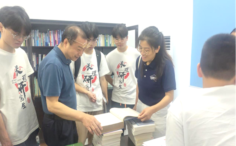 随着交流的进一步深入,郭吉平还热情地带领大家参观了他的办公书房。五个高大的书柜映入眼帘,从经典的专业教材到前沿的学术论文,每一本都似承载着无尽智慧,他告诫实践团要潜心阅读,笃志好学,从最经典的书籍了解热喷涂工艺。当我们实践团走进郭董事长的书房,正应了这一句:书中自有黄金屋,书中更有科研路。