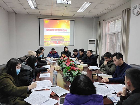 12月15日,城南学院在2-202开展学生支部书记业务培训,院党委书记黄自力、副书记陶传谱、党务部成员、学生支部书记共20余人参加。