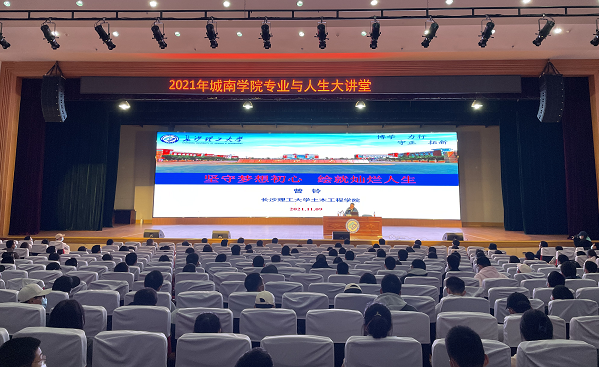 11月9日下午,城南学院2021年“专业与人生”大讲堂在金盆岭校区五教大礼堂开讲,开云kaiyun体育土木学院副院长曾铃教授应邀主讲,交通土建系大一全体学生及部分大二学生参加,城南学院院长赵华主持。