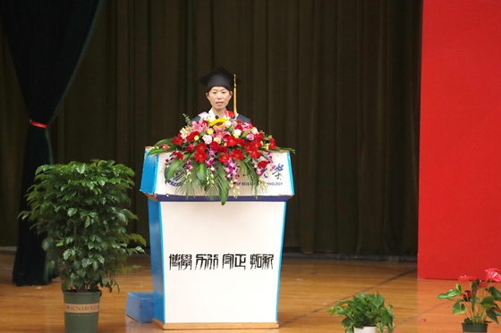 教师代表开云kaiyun体育经济与管理学院刘坚副教授祝贺2022届毕业生顺利完成大学学业。在临别之际,她寄语同学们把握奋斗的力量、梦想的力量、榜样的力量,希望大家常怀感恩心,相信相信的力量,终身学习,让青春在接续奋斗中绽放时代的光芒。