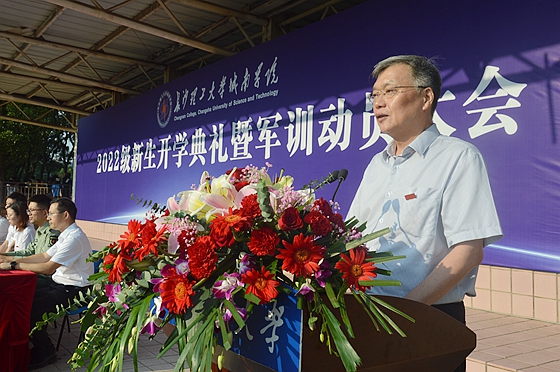 9月15日上午,城南学院在金盆岭校区田径场举行2022级新生开学典礼暨军训动员大会。副校长谈传生,相关职能部门负责人、学院领导班子成员、教师代表、带训教官、学生辅导员以及全体新生参加了大会。大会由院长赵华主持。