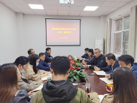 10月27日上午,城南学院党委理论学习中心组(扩大)在金盆岭2-202开展集中学习,院党委成员、各系党总支书记、就业专干、就业办人员参加,院党委书记李修春主持学习。