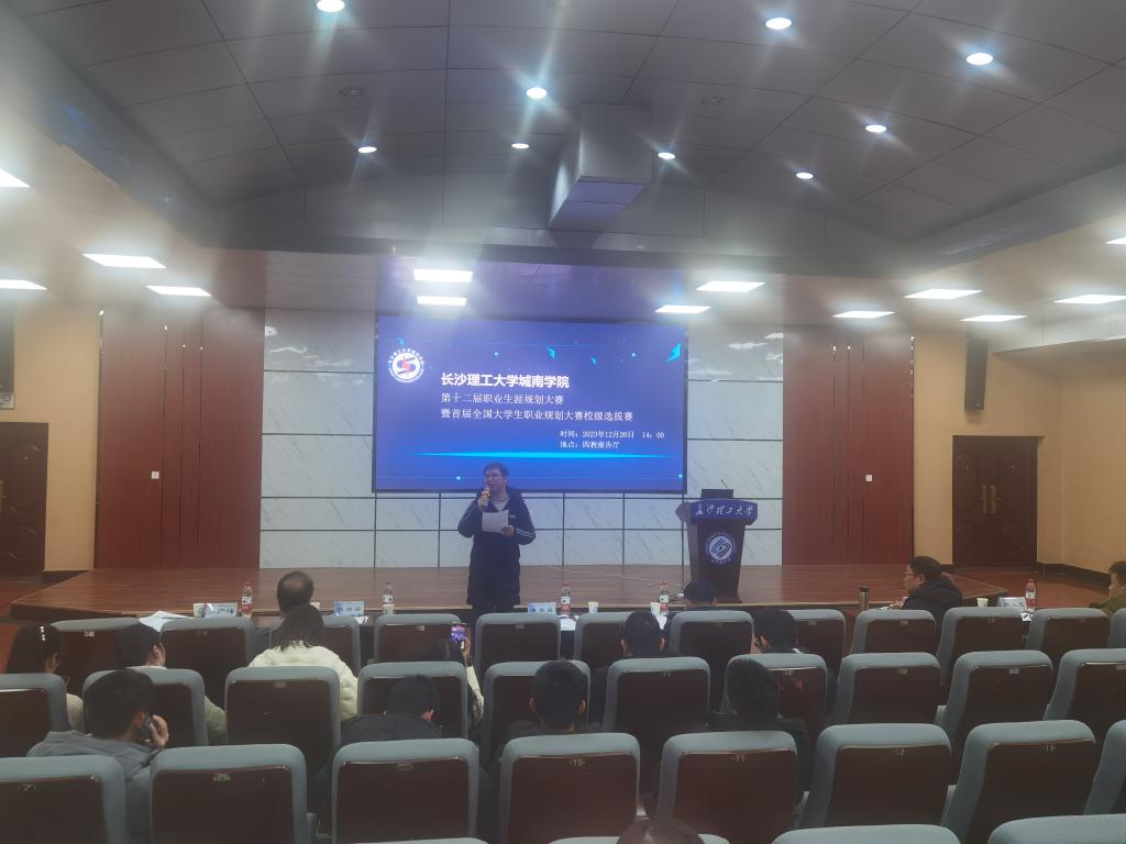 为全面普及大学生职业生涯规划知识,帮助同学们树立正确的职业观念,提高职业生涯规划能力,为未来就业和创业奠定坚实基础,2023年12月20日,城南学院在金盆岭四教报告厅举办第十二届职业生涯规划大赛暨首届全国大学生职业规划大赛校级选拔赛。学院党委书记李修春亲临大赛现场,各系辅导员老师到比赛现场为同学们加油助威。