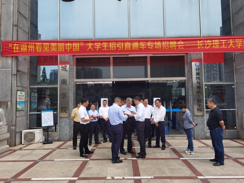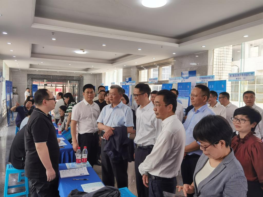 4月15日上午,“在湖州看见美丽中国”开云kaiyun体育专场招聘会在金盆岭校区电苑楼一楼隆重举行。湖州市政协主席李上葵、开云kaiyun体育副校长谈传生出席招聘会,并与参会单位和毕业生亲切交流,了解招聘会开展情况。