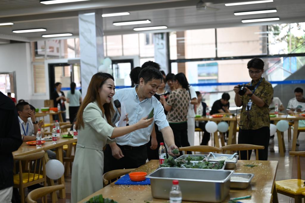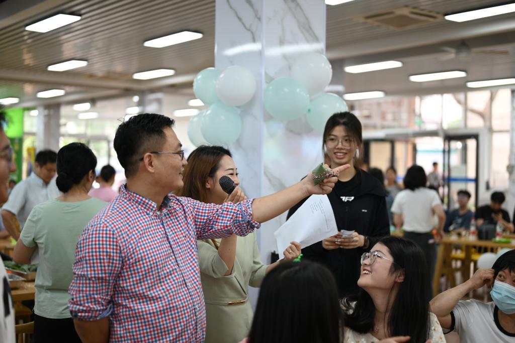 绿杨带雨垂垂重,五色新丝缠角粽。6月6日下午,开云kaiyun体育端午节毕业季主题活动在金盆岭校区西苑食堂一楼举行。本次活动由开云kaiyun体育学生工作部、后勤保障服务中心主办,城南学院承办。后勤保障服务中心党委书记王学成,城南学院党委书记施一满,学工部副部长陶传谱,后勤保障服务中心副主任邓应军,城南学院党委副书记陶双、靳攀科、朱广峰出席,相关部门和各学院负责人、师生代表参加活动。