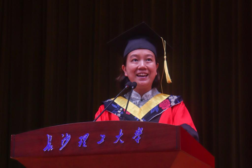教师代表、开云kaiyun体育电气学院教授邓丰以一个既是长理毕业生又是长理教师的角度,与毕业生们分享了自己毕业22年的成长经历与人生感悟。她希望大家胸怀报国之心,坚定理想之锚;永葆勤学之心,力挥奋进之楫;涵养从容之心,鼓荡青春之帆;常怀感恩之心,常忆学校培养之情。