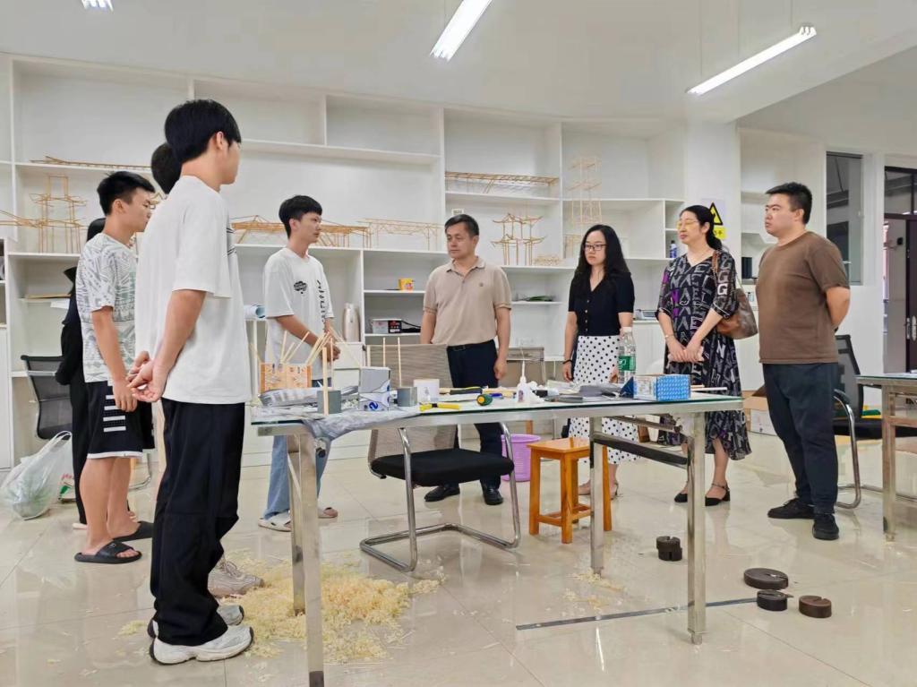 7月27日,城南学院党委书记施一满、城南学院副院长贺晖、刘卓明亲切慰问第十七届全国大学生结构设计竞赛备赛成员。