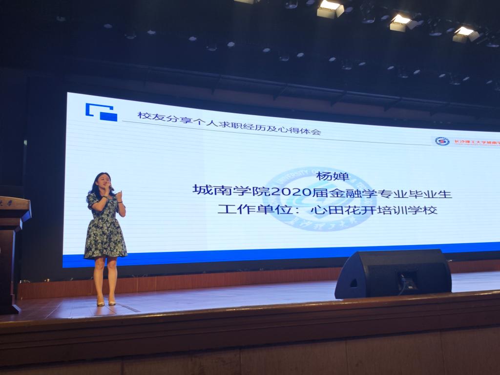 首先,由本次会议邀请到的物产中大元通电缆有限公司无锡部主任王明伟、成都心田花开培训学校金牌讲师杨婵、江西宏宇能源发展有限公司准员工谭煜龙等多名就职于知名企业的优秀校友为应届毕业生们分享求职经历和心得体会。