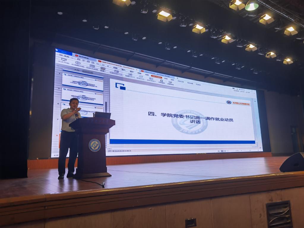 为全面推进学院2025届毕业生就业工作,引导毕业生树立正确的就业观念,提高就业积极性和主动性,9月3日,城南学院在五教大礼堂召开2025届毕业生就业动员大会。学院党委书记施一满、党委副书记陶双、副院长朱广峰、副院长贺晖、招就办主任廖瑞虎、各系党总支书记和就业专干出席会议,全体2025届毕业生参加会议。会议由陶双主持。