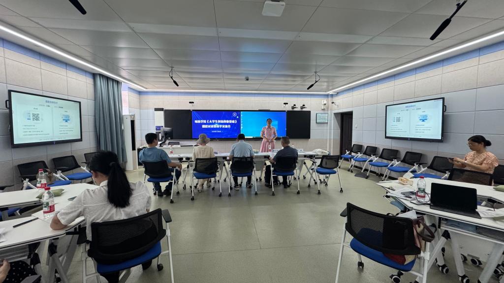 为深化创新创业课程改革,提升教学质量,开云kaiyun体育城南学院于7月8日在金盆岭校区6教408举办《大学生创新创业基础》课程试讲暨教学交流研讨会。活动特邀学校教学督导团团长张宏伟、副团长周云鹏、秘书长夏清,城南学院院长李平担任评委,学院副院长贺晖全程主持,教务部相关负责人及课程组全体教师参与研讨。