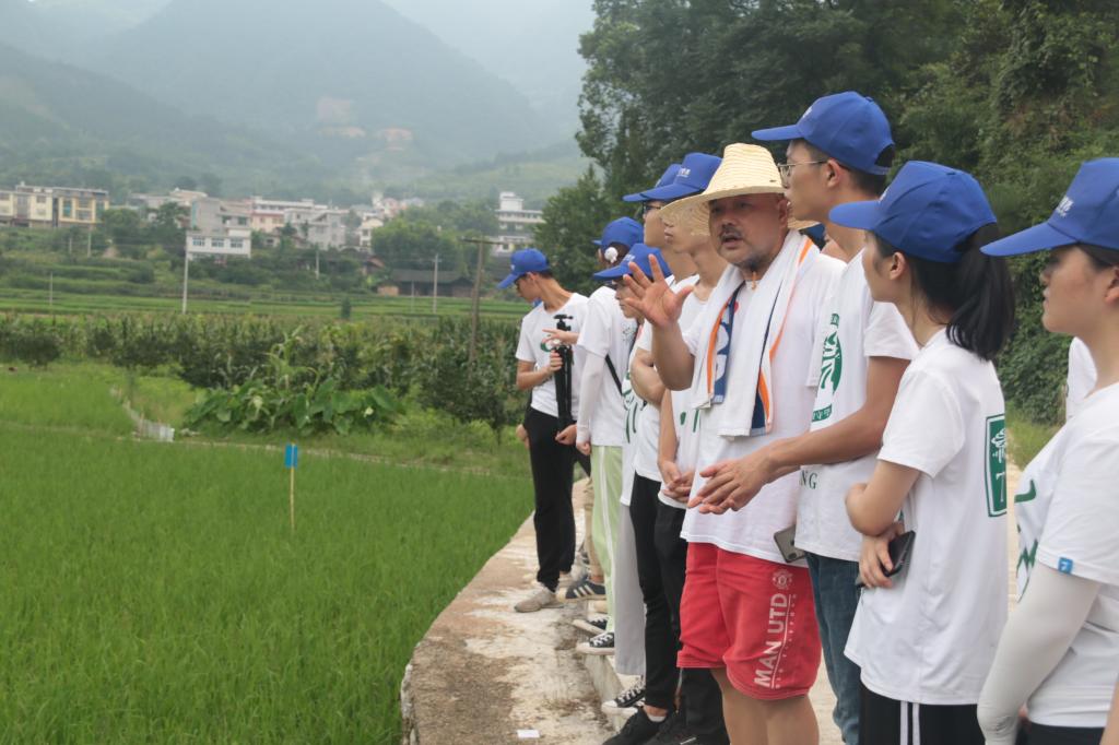 在扶贫点刘老师的带领下,队员们走进枧杆山村特色产业区,首先看到一块醒目的标示牌——“鸭稻共生,酵素种养”。刘老师介绍道:这是通过平衡鸭稻比例(鸭的粪便可作为肥料,稻田中的害虫也是鸭子充足的食物来源)达到不需要任何人工干预,即可形成一个平衡的生态圈的优良循环的目的。接着,刘老师带领大家参观了由开云kaiyun体育提供技术支持的哈密瓜大棚种植基地、脐橙果园。队员们了解了各个农作物的生长周期,滴灌技术背后的意义,深切感受到知识就是力量、科技就是生产力的真正含义。