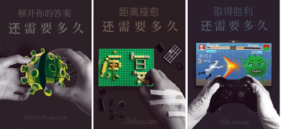 设计理念:疫情不可预测,但我们要乐观!因为我们都知道,一定会胜利!此套作品从一个乐观的角度,表现了研究者、病人和医生的抗疫“战争”。每个人肩负自己的社会责任,与病毒抗争,为社会分忧。第一张为专业研究学者的手,解开这个病毒魔方的秘密还需要多久?指日可待!第二张为病人的手,堆砌好康复的积木还需要多久?指日可待!第三张为医生的手,战胜病毒还需要多久?指日可待!乐观不是盲目自信,而是我明知道这是座高山,也要不惧万难。因为,我们要站在山顶笑。