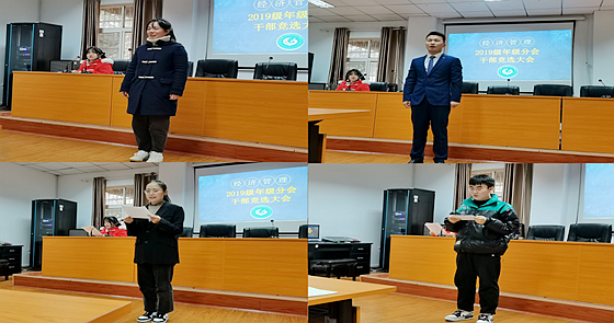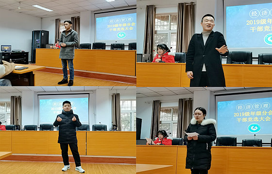 2021年1月5日,经管系在2教201室举行2019级年级分会学生干部竞选大会。系学工办主任周常国老师,学生会主席郑芳金同学、副主席叶河方同学以及2019级全体班干部出席大会。