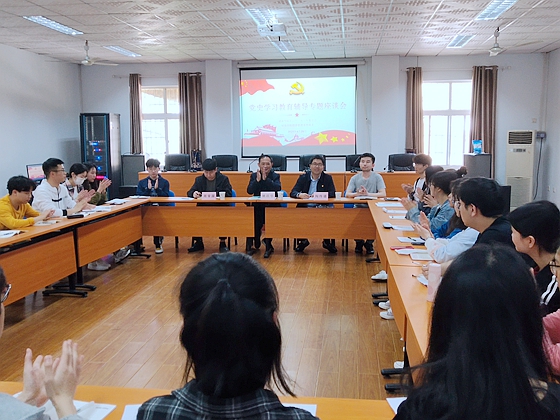 4月29日中午,经济管理系在2教201室召开党员党史学习教育辅导座谈会。学院党委副书记陶传谱、学院关工委常务副主任姚跃华、系党总支书记周常国及学生党员代表参加,系党建辅导员田帅主持。