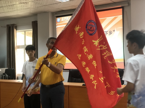 最后,李修春为本次暑期“三下乡”志愿服务队授旗。