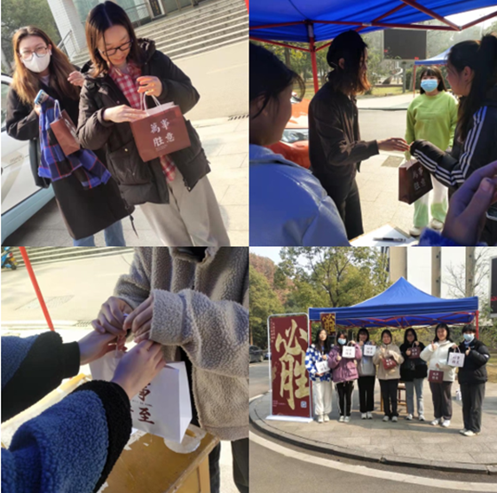 为了让考研学子们更加充满信心与能量的应对即将到来的考试,12月9日,文法艺术系针对2018级考研生开展了“考研助力”活动。年级辅导员周心怡老师与学生会企宣部学生干部在图书馆楼楼下为考生们送去暖心的支持和热情的加油,并为每位考研学生送去精心准备的考研助力礼包。