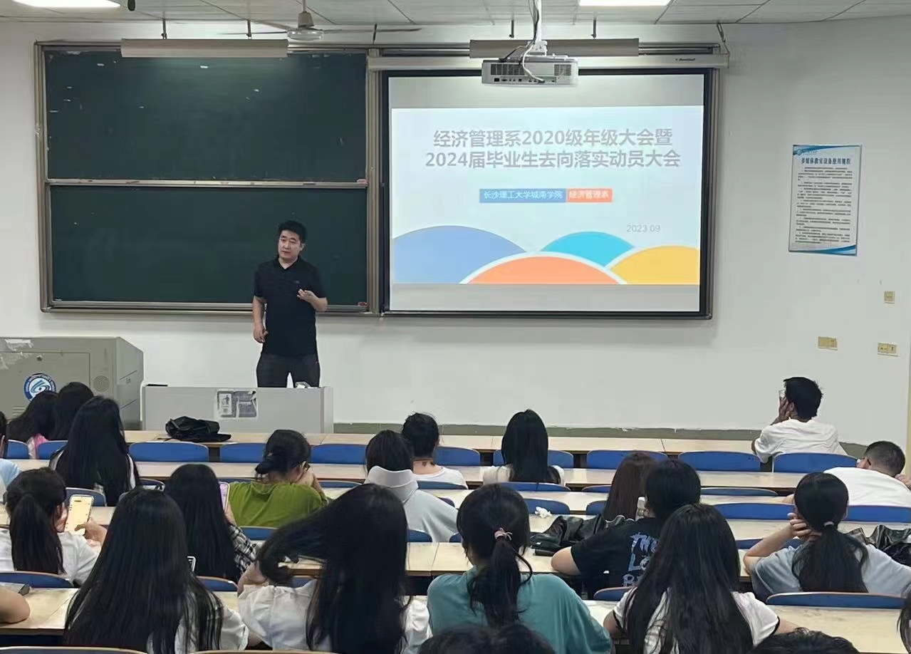 为帮助学生实现“精准就业、尽早就业”,2023年9月5日下午,经济管理系在六教210教室举行2024届毕业生就业动员大会。会议由2020级辅导员王志鹏老师主持。