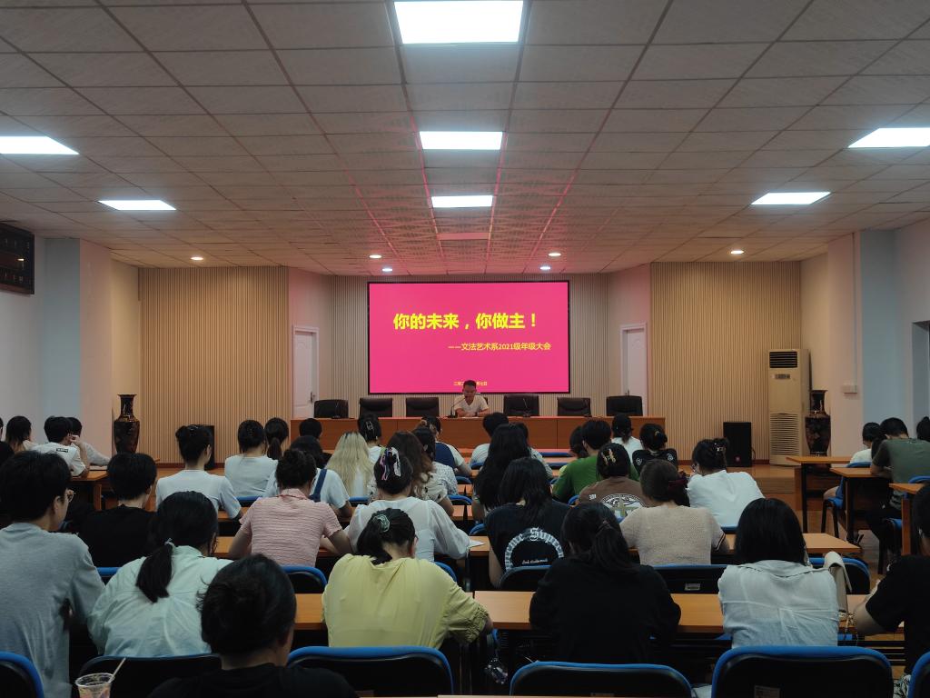 9月8日,文法艺术系在二教201举行2021级年级大会,会议由辅导员谭怀芝老师主持,21级全体学生参会。