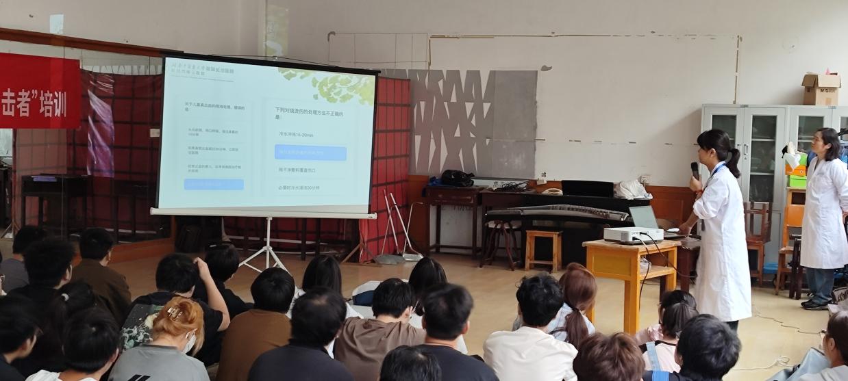 此次应急救护知识培训由长沙市三医院老师们的带领,内容包括心肺复苏、自动体外除颤器使用、海姆立克急救法等常见意外伤害的现场处理。
