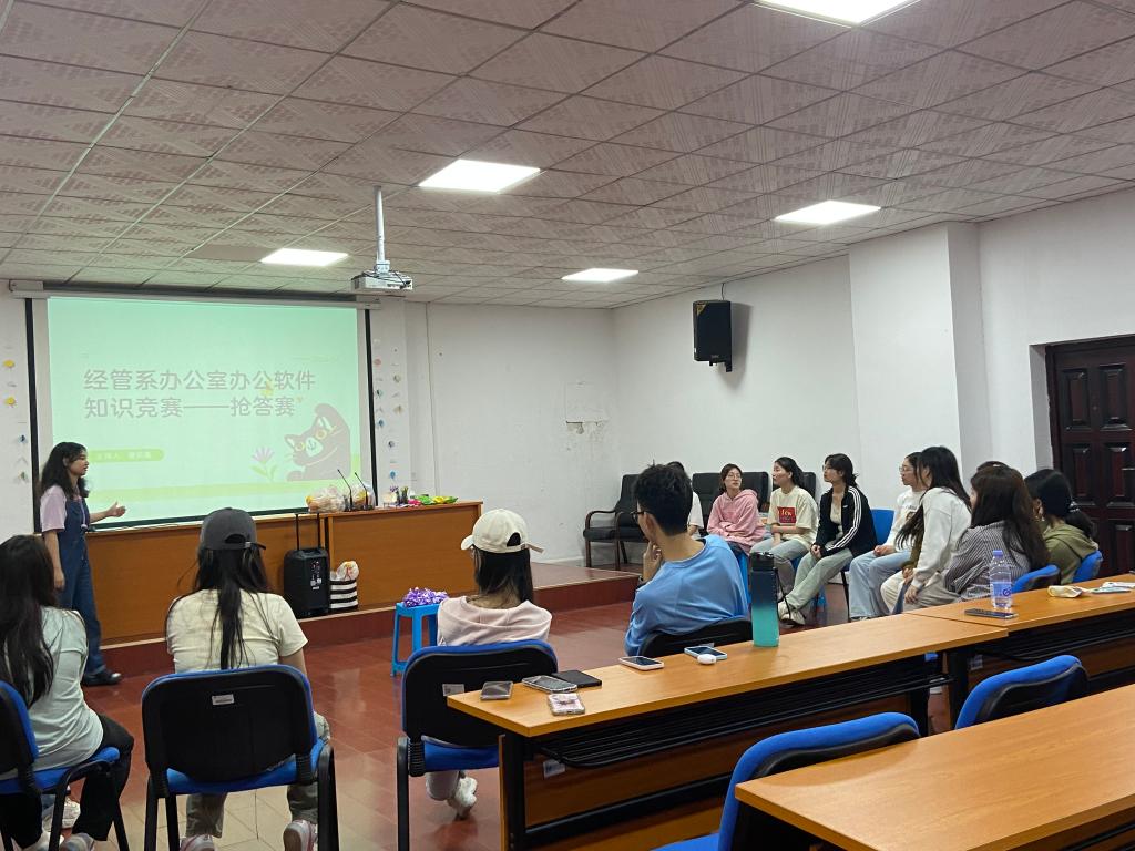 活动伊始,同学们通过一系列有趣的游戏迅速破冰,拉近了彼此的距离。随后,学生干部全员出动展开了“听歌识曲”、“谁是百科王”和“办公软件知识竞答”等团队竞技任务。同学们齐心协力、奋力拼搏,团队成员争相为自己的队伍出谋划策,展现出了良好的团队协作精神和争先意识。