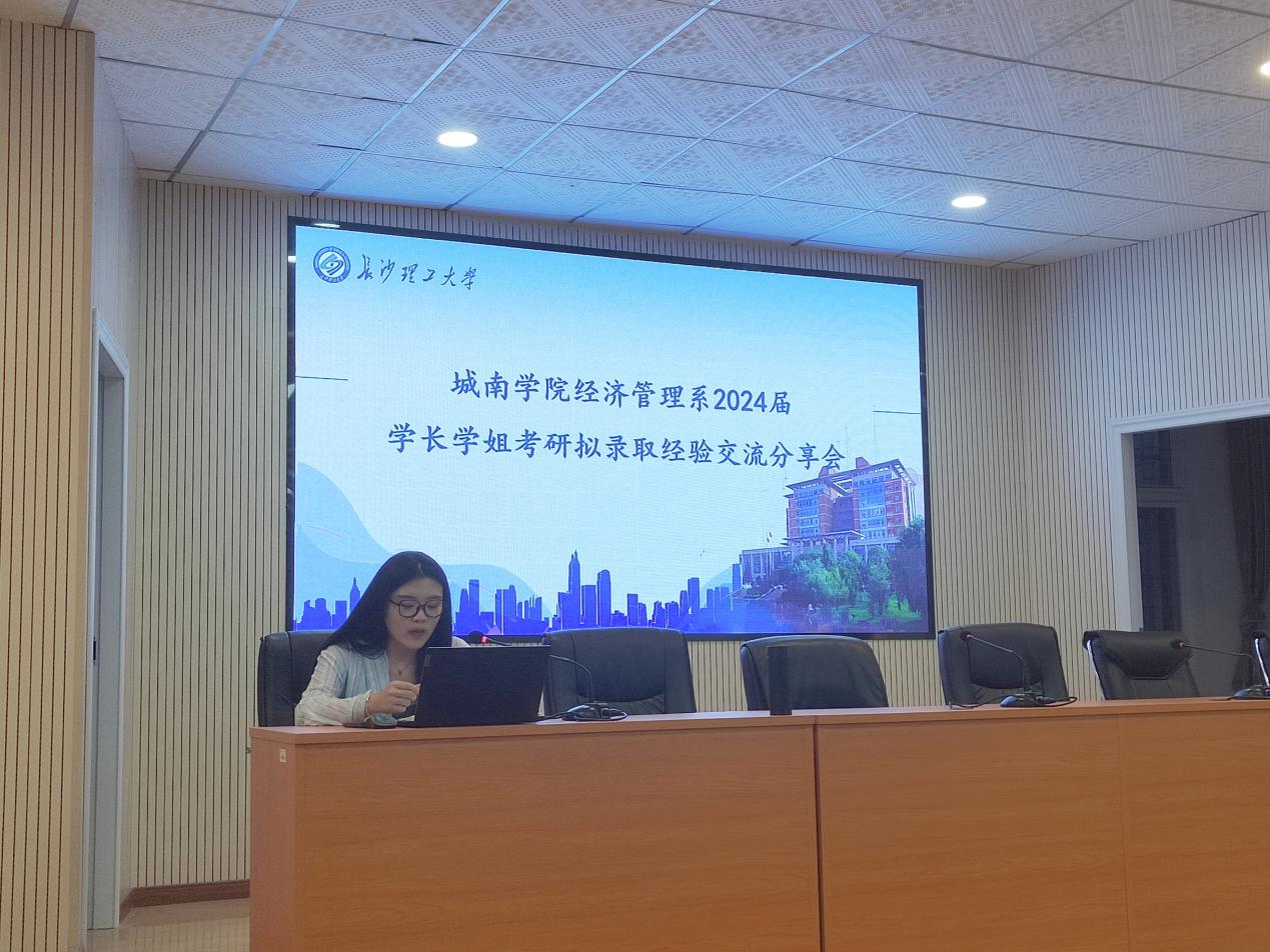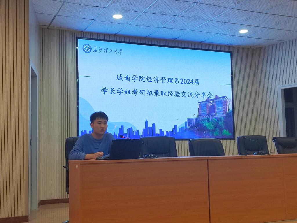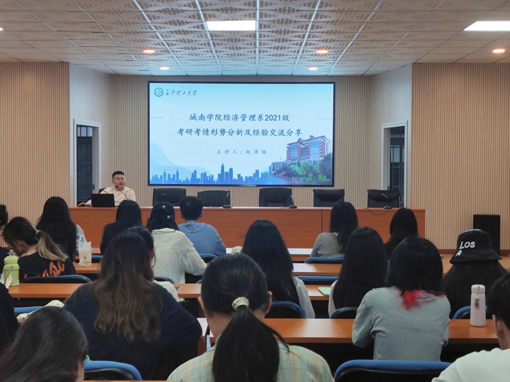 为进一步加强我系学风建设,帮助学生了解更多考研信息、明确考研目标、做好考研规划,解决备研过程中发现的问题,城南学院经济管理系于5月8日晚上,召开2025届学生考研考情形势分析会及经验交流分享会。会议邀请到我系2024届部分考研拟录取的优秀学子做经验分享。会议由2021级辅导员赵泽铭老师主持。