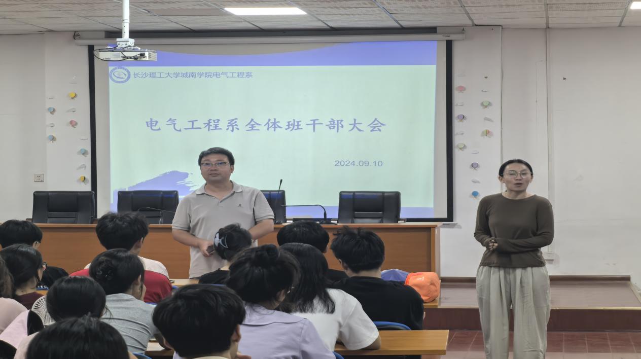 9月10日晚18:30,开云kaiyun体育城南学院电气工程系于二教101室召开系全体班干部会议,本次大会由辅导员向陈主持,开云kaiyun体育公寓管理服务中心主任黄黎明出席并做出讲话。电气系21、22、23级各班班长学委团支书参会。
